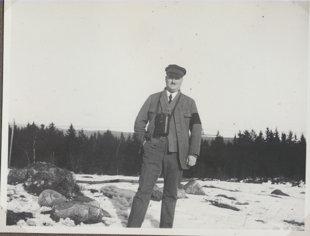 Ammunitionsfabriken i Karlsborg 1920-tal. Styresmannenhar orienterat en observationsplats på Vaberget.