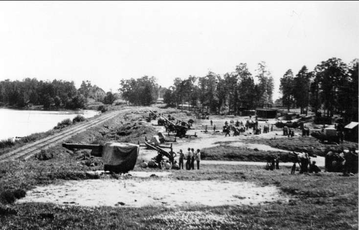 Artilleriet, skjutning från skjutplatsen vid Vätterstranden. Järnvägsspår syns vid sjökanten.