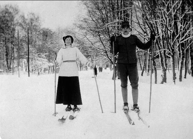 Karlsborg. Carin och Pontus Svinhufvud på skidor.