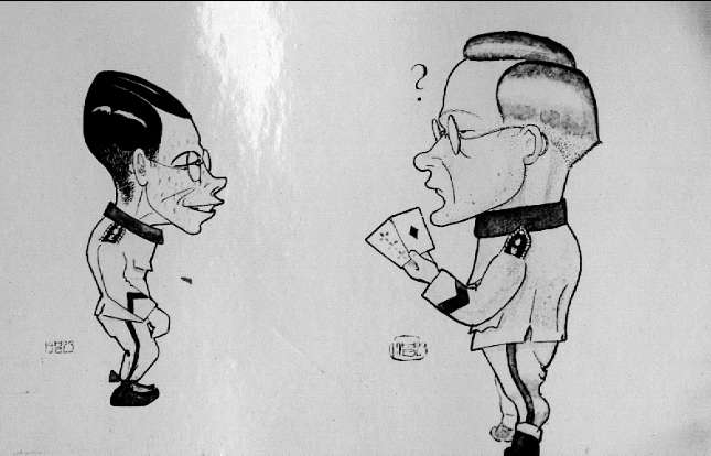 Karikatyrteckning föreställande "Finnen" och Björling.
