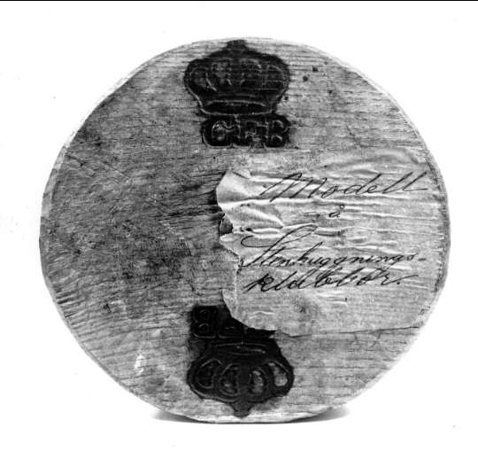 Karlsborg, fästningen. Stenhuggningsklubba som användes vid fästningsbygget. Här sigillet. Foto ur POS Borgs Samlingar.