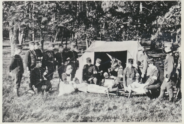 Karlsborg i början av 1900-talet. Sjukvårdsövning.