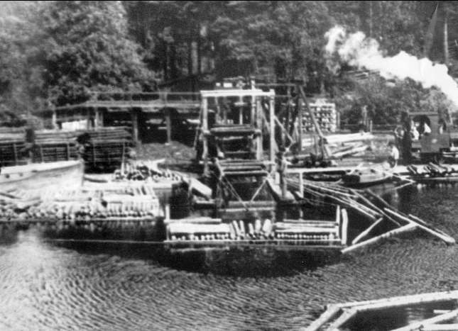Undenäs. Flottning, skiljeställe vid Edet, i mitten 1920-talet.