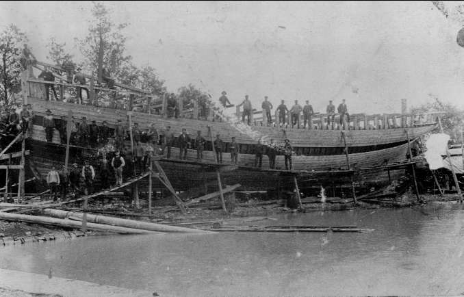 Fartygsbyggnad i Sjötorps varv.