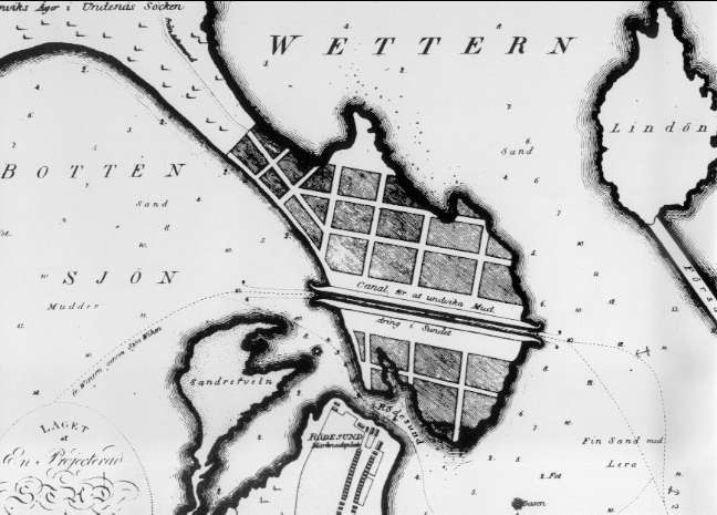 Karta över Rödesund, Göta kanalleden m.m. från 1811.