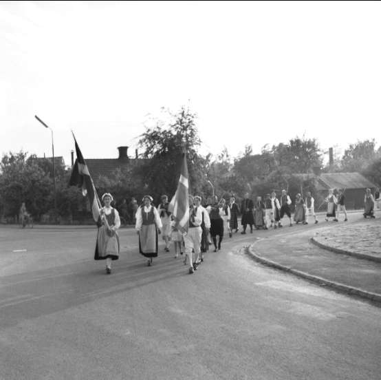 Danska folkdansare på besök i Karlsborg, uppvisning på Moliden. Endast neg finns.