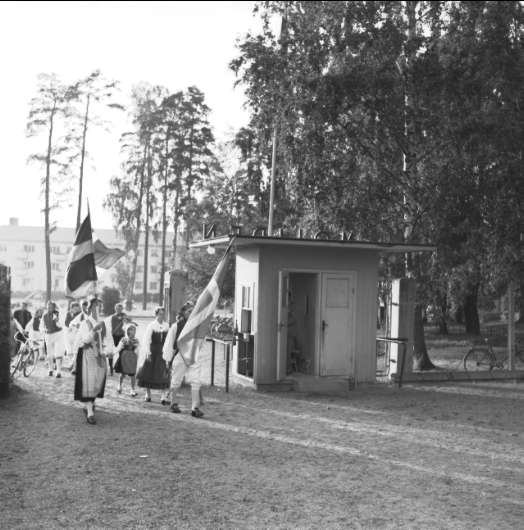 Danska folkdansare på besök i Karlsborg, uppvisning på Moliden. Endast neg finns.