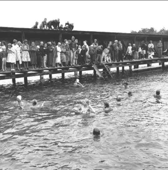 Karlsborg, simskolans avslutning 1960. Endast neg finns.