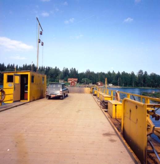 Karlsborg, färjetrafik över Brosundet, 1966. 1983 var bron över Brosundet färdig. Endast neg finns.