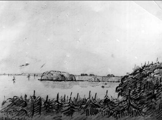 Ur en reseskildrares skissblock år 1837, Karlsborgs fästning, västra vallen, Karlsborgsviken. Förstoring 29 x 40 cm. Neg finns.