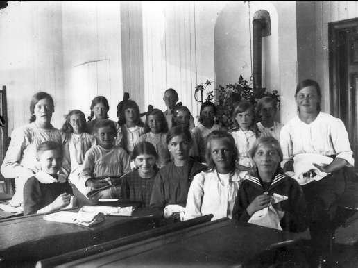 Undenäs, Valtrets skola. Slöjdgrupp omkr år 1920, slöjdlärare Tilda Staaf.