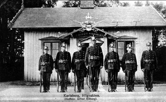 Fästningen. Vaktstyrkan uppställd framför högvakten.