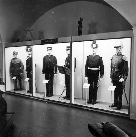 Karlsborgs museum, fästningssalen, olika truppslag.