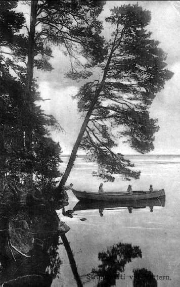 Karlsborg, strandparti vid Vättern. Vykort. Foto: A Sjöberg.