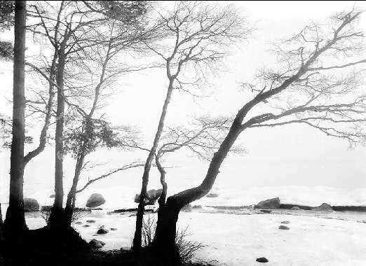 Karlsborg, Vättern, stränder och omgivningar vintertid. Foto: Alfred Sjöberg. Finns endast glasnegativ.