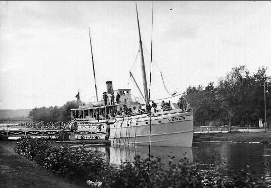 Parti från Rödesund. Passagerarbåten Venus passerar Göta kanal. Endast glasneg finns. Foto: Axel Sjöberg.