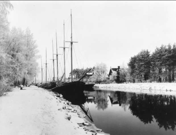 Rödesund, parti från Göta kanal, vinterliggare före år 1905. Endast neg finns.