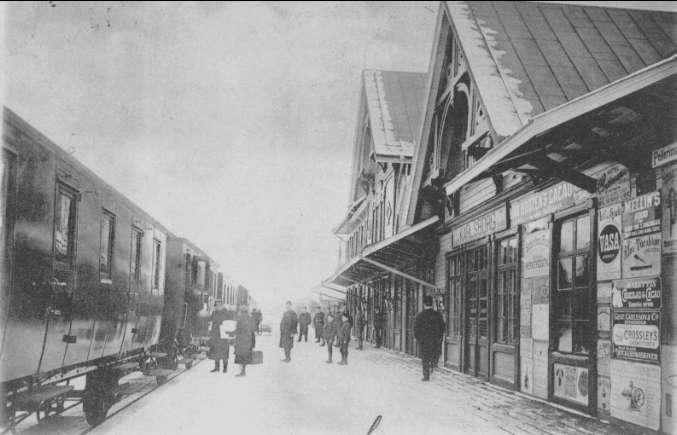 Karlsborgs järnvägsstation. Invigd den 26 juli 1876. Kortet taget omkr år 1900. Neg. finns. Förstoring 40 x 56 cm.