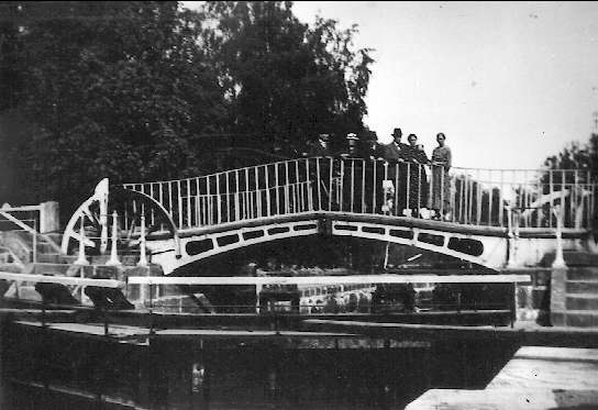 Gamla bron (klaffbron) i Forsvik, den byggdes år 1813 och var den första som byggdes över Göta kanal. Förstoring 27 x 40 cm.