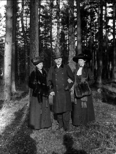 Karlsborg. Stina Nilsson, Ida Waller (född Nilsson) samt verkmästare Viktor Waller. Neg finns.