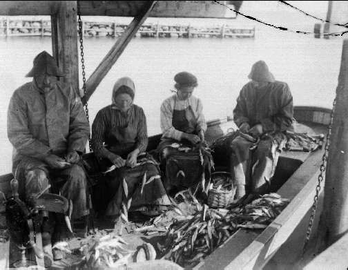 Gräshult, till vänster fiskare Emanuelsson även kallad "Sjödunken", hade affär på Volontärskolan. Med på bild är även en syster till Emanuelsson. Neg och glasneg finns.