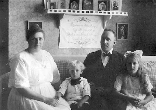 Fanjunkare Janzon med familj i heminteriör. Neg finns.