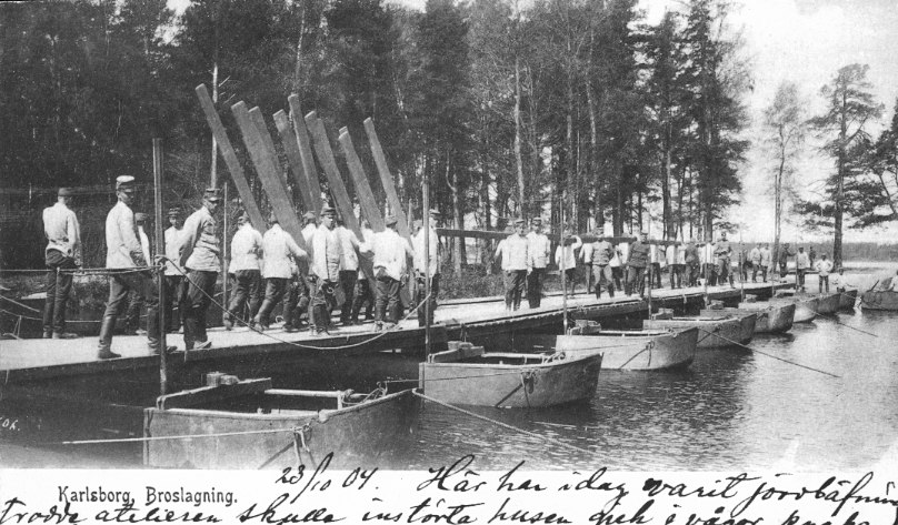 Karlsborg. Broslagning. Vykort. Fotograf: A. Sjöberg, Karlsborg.