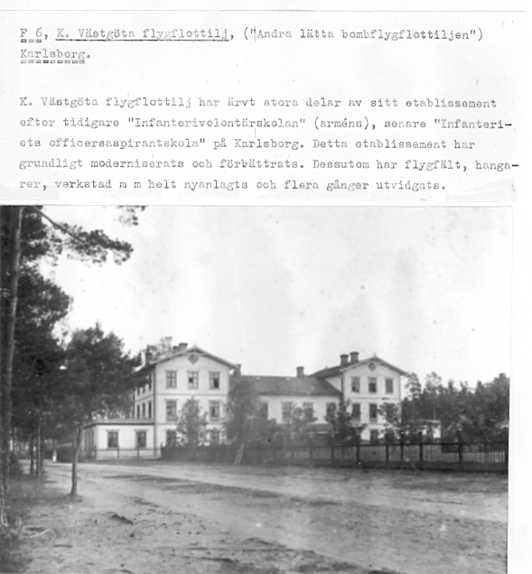 F6 Karlsborg. Volontärskolan befälsbyggnad. Förtext till albumet finns i arkivet samt som Word-dokument. Albumet är en del av en donation från Karl-Axel Hansson, Karlsborg.