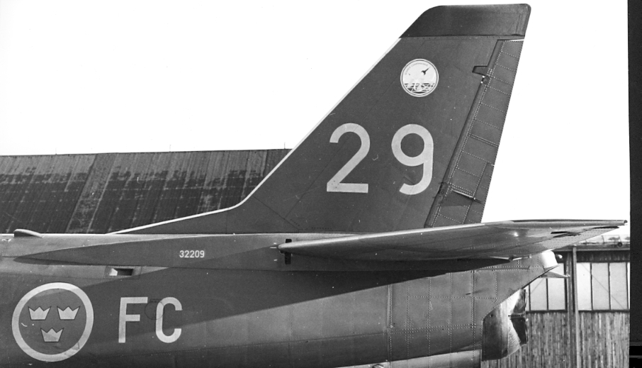 Detalj av flygplan A32 "Lansen". Albumet är en del av en donation från Karl-Axel Hansson, Karlsborg. Förteckning över hela donationen finns i albumet samt som Word-dokument.