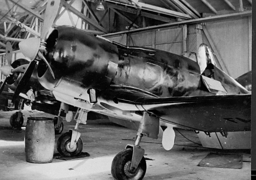 1940. Fiat G50. (Foto: T. Thoreé). Götaverkens flygavdelning monterade på drygt 14 dagar 16 st Fiat G50 i "Blå Hangaren" på Torslanda. Närmast i bild FA24 som avgick till Västerås via Karlsborg (för att flygas till Finland). Albumet är en del av en donation från Karl-Axel Hansson, Karlsborg. Förteckning över hela donationen finns i albumet samt som Word-dokument.