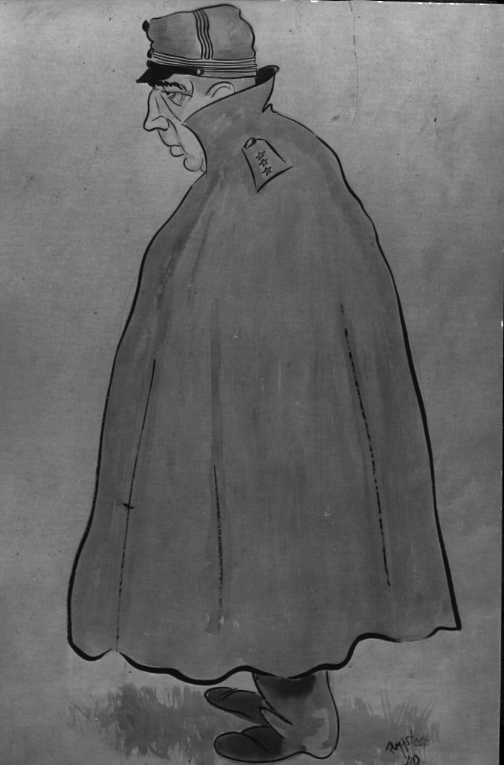 F6 Karlsborg 1940. Arvodisten kapten Litzén, chef för 4. Kompaniet samt mob.off, tecknad av vpl.ff. Agne Högstedt F6. Albumet är en del av en donation från Karl-Axel Hansson, Karlsborg. Förteckning över hela donationen finns i albumet, samt som Word-dokument.