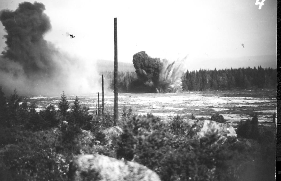 F6 Karlsborg 1940. Vy över bombfältet på Rissnäset under fällning av stridsladdade bomber den 1-2/10. Albumet är en del av en donation från Karl-Axel Hansson, Karlsborg. Förteckning över hela donationen finns i albumet, samt som Word-dokument.