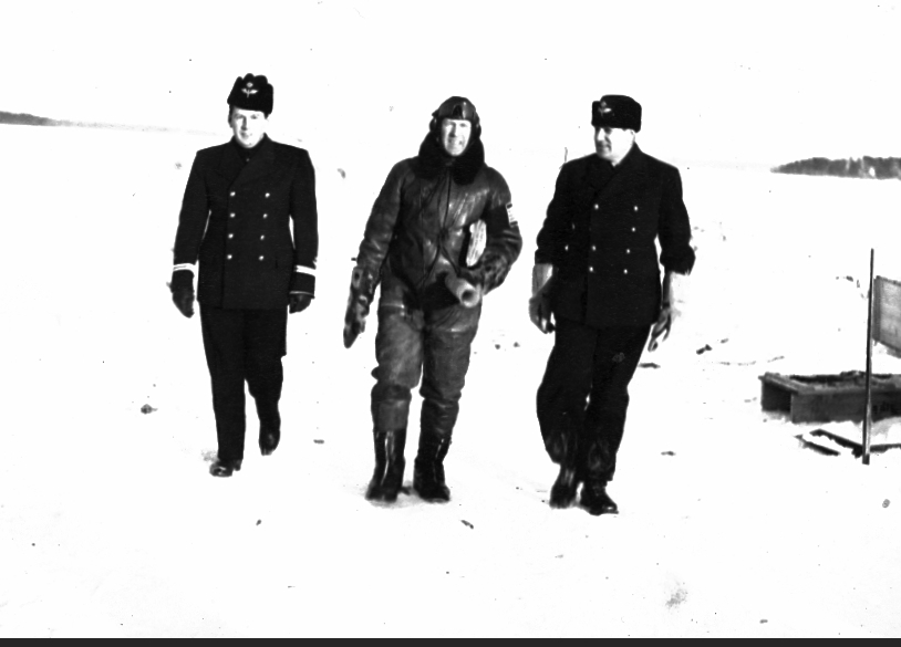 F6 Karlsborg 1942. Vinterövning 8/2-8/3, Piteå. Förordnade chefen F6, överstelöjtnant Hård (mitten) besöker vinterövningarna. Albumet är en del av en donation från Karl-Axel Hansson, Karlsborg. Förteckning över hela donationen finns i albumet samt som Word-dokument.
