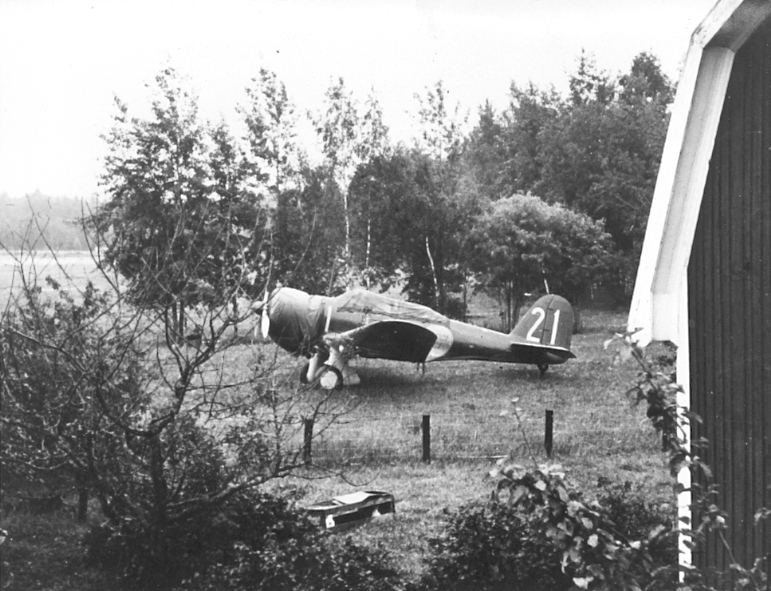 F6 Karlsborg 1943. Fältmässig uppställning av flygplan B5:a. Albumet är en del av en donation från Karl-Axel Hansson, Karlsborg. Förteckning över hela donationen finns i albumet samt som Word-dokument.