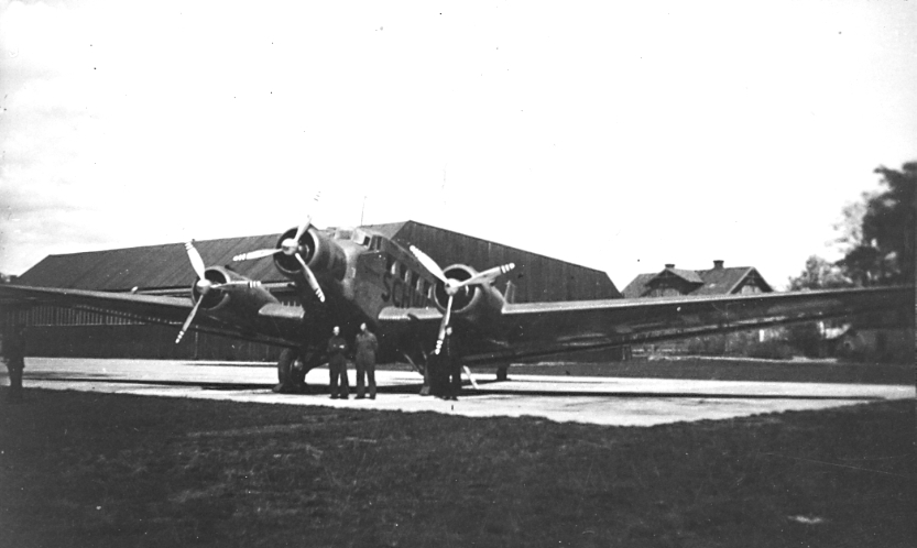 F6 Karlsborg 1944. SE-AFD Vikingaland disponerades av F6 den 1876-31/7 samt 8/9-30/9. Här utanför 1. Divisionens hangar. Albumet är en del av en donation från Karl-Axel Hansson, Karlsborg. Förteckning över hela donationen finns i albumet samt som Word-dokument.