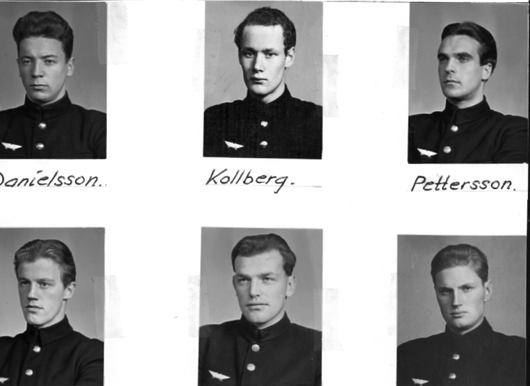 F6 Karlsborg 1946. Vicekorpralerna från vänster övre raden: Danielsson, Kollberg, Pettersson. Nedre raden från vänster: Brunstorp, Lindqvist, Johansson. Albumet är en del av en donation från Karl-Axel Hansson, Karlsborg. Förteckning över hela donationen finns i albumet samt som Word-dokument.