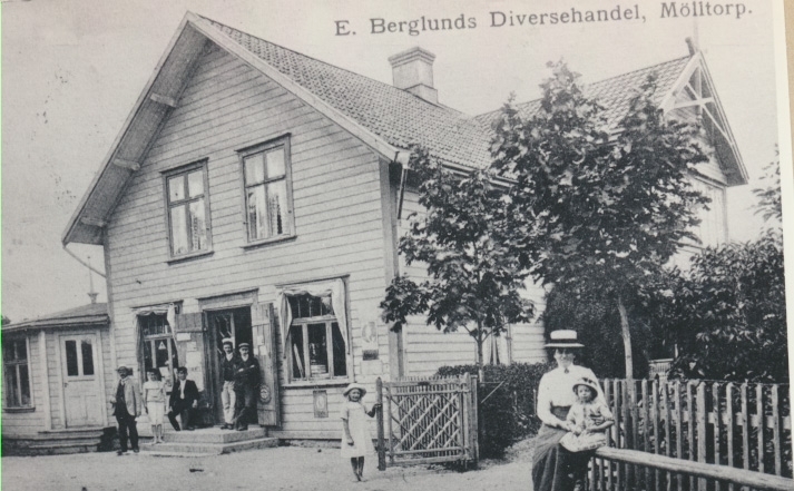 Karlsborg i början av 1900-talet.E. Berglunds diversehandel Mölltorp.