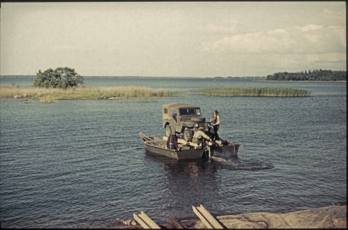 Titel: Signaltrupperna, S2 Karlsborg 1957. Jeep-färja demonstreras i samband med Jutan-övningar på Vänern.