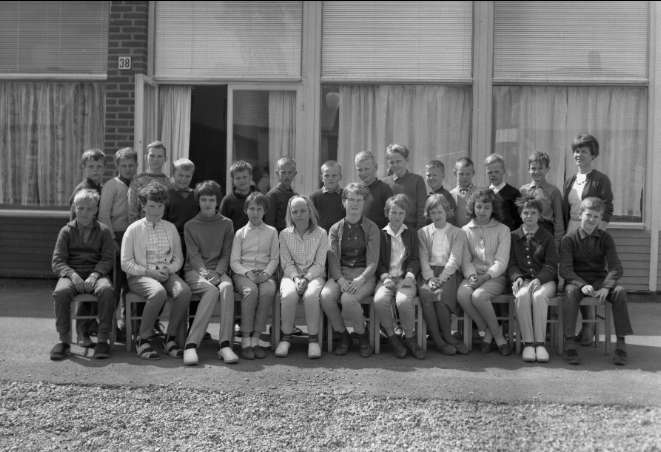 Klassfoto från Södra Skogens skola, Karlsborg. Klass 5 B. Lärare: Sundberg. Endast neg finns.
