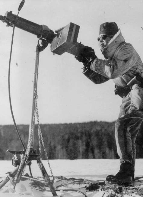 Manöver i norr, året före beredskapen. Kulspruta m/36 i "gamla" m/14 lavett med LV-anordning.