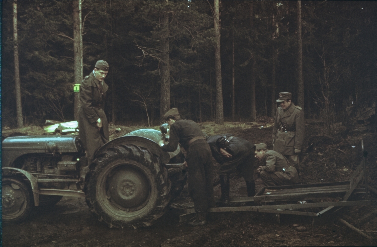 Signaltrupperna, S2 1959. Bl.a. major Schale, löjrnanterna Schmidt och Jansson. Från en bataljonsövning.