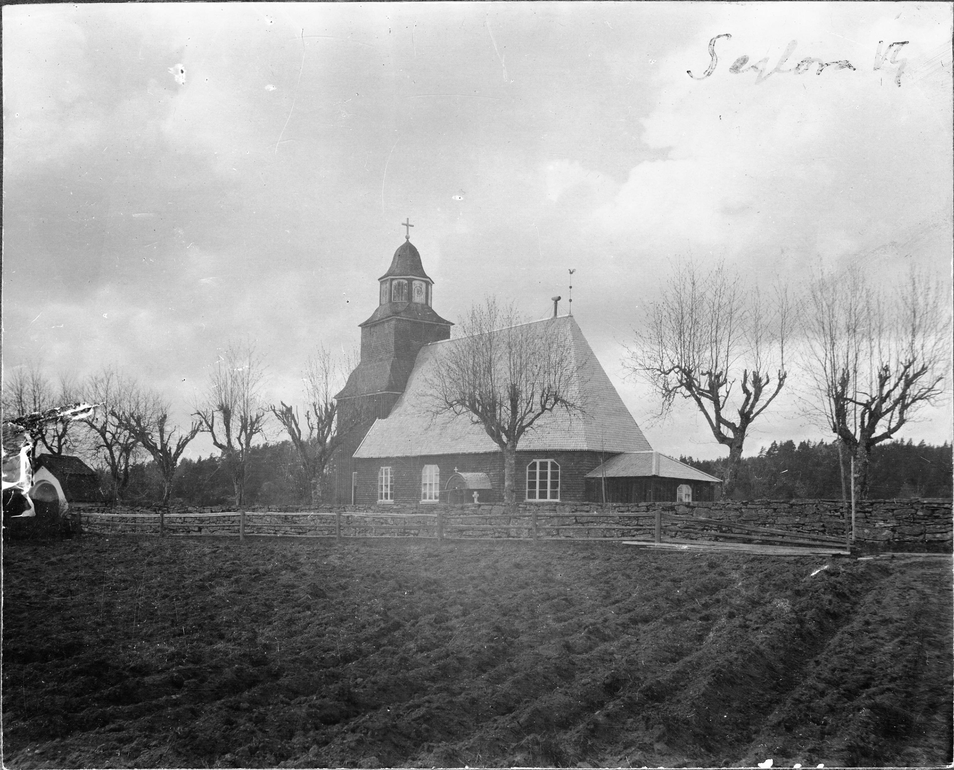 Kyrkan från sydöst. Före flytten till Stockholm och Skansen.
