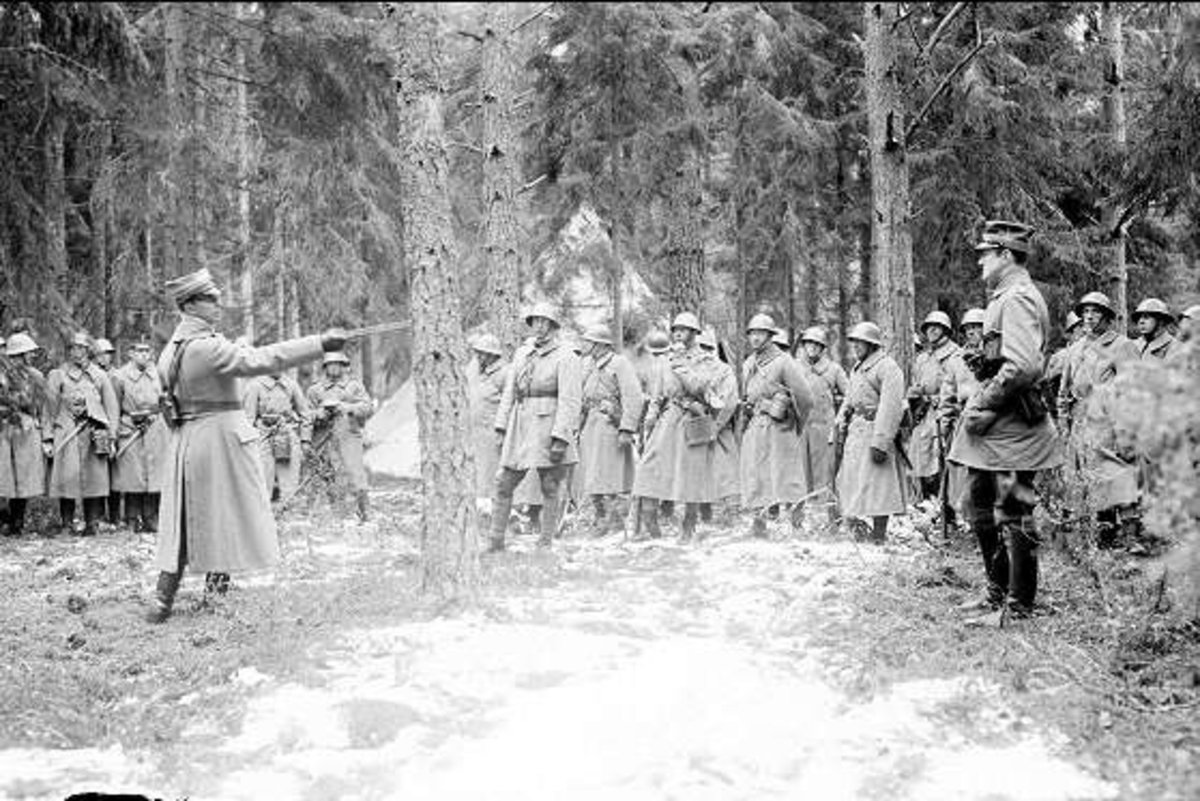 Utbildningskurs för kavalleriets underbefäl. Genomgång före/efter övning. Längst till höger löjtn. C-O Palmstierna.