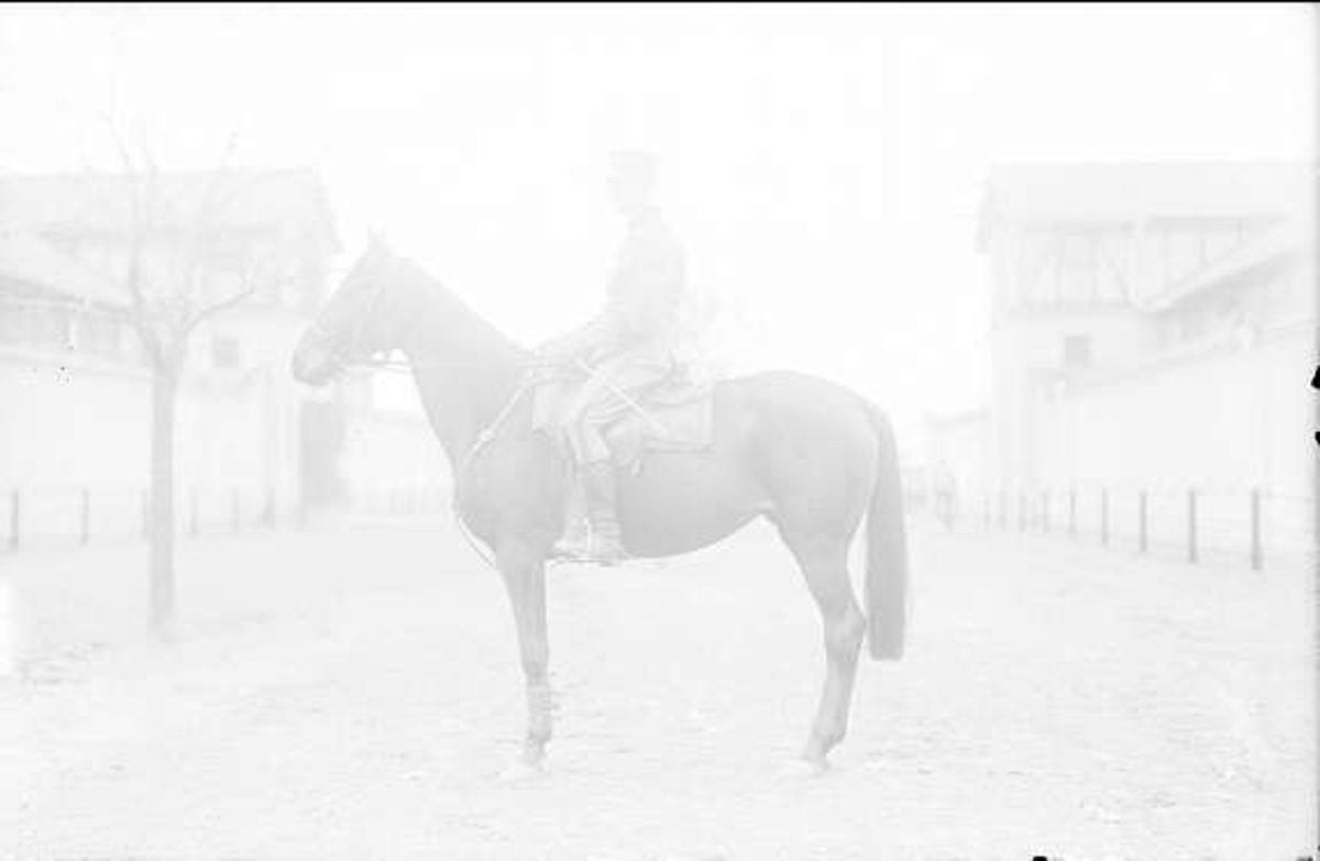 Korpral på tilldelad stamhäst iförd uniform m/1910 och mössa m/ä.