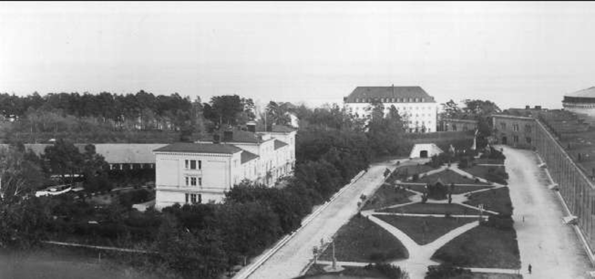 Fästningen. Havremagasinet syns rakt fram i bild. Till vänster befälsbyggnad och till höger slutvärnet.
