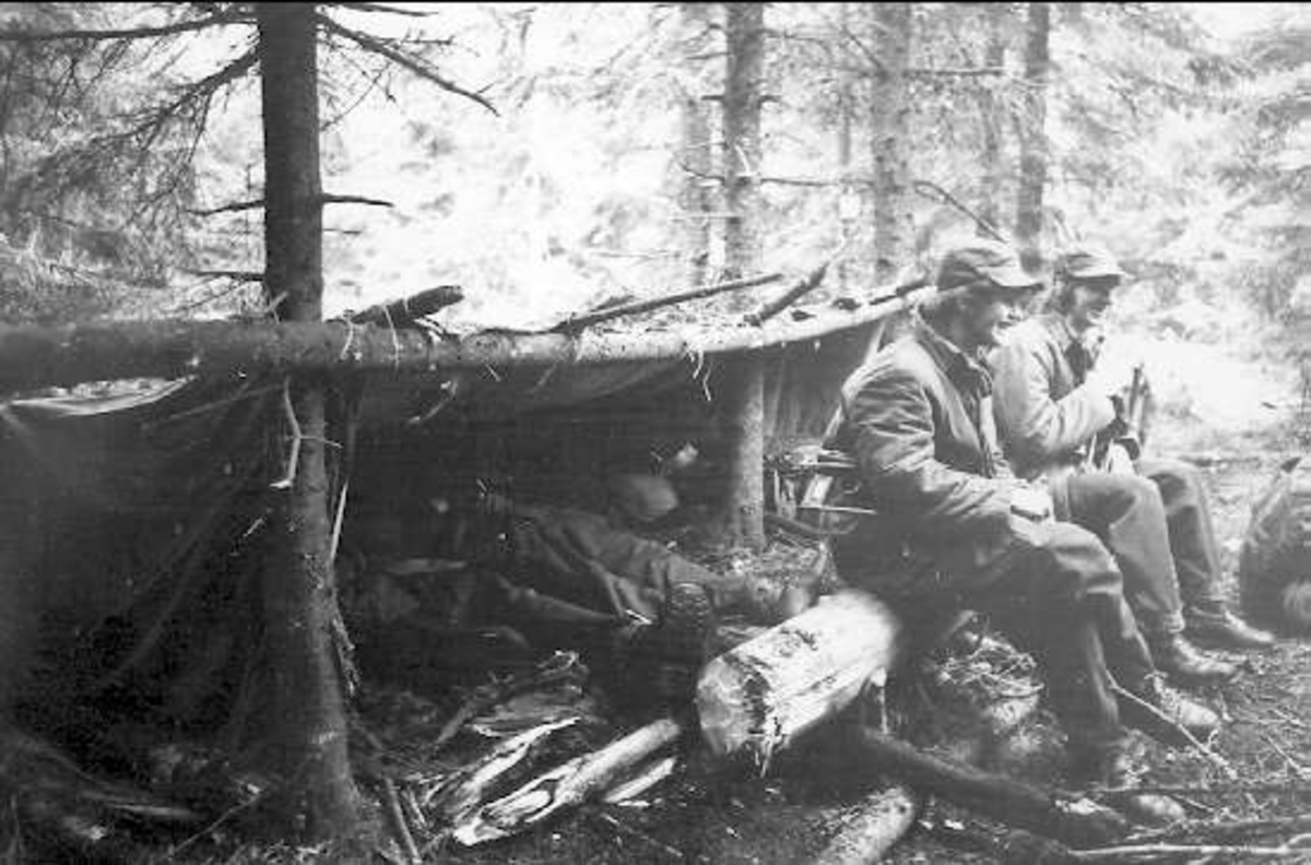 Titel: Signalregementet S 2, verksamhetsår 1984.Signalsoldaterna genomför gruppvis vecka "fria kriget", handledare ur Fallskärmsjägarskolan.