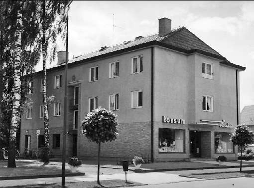 Karlsborg, varuhus (Konsum) omkr 1955, den var då belägen på Kungsgatan. I denna byggnad finns nu Föreningssparbanken.