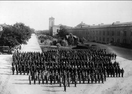 Karlsborg slutvärnet. Gruppbild ing 2 vid västra paradplatsen år 1915.