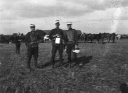 I fält med 4. Skvadron K 7. Från vänster: underlöjtn Gösta Leffler K 7, löjtn Folke Bennedick i 11?, underlöjtn Adrian Florman K 7.