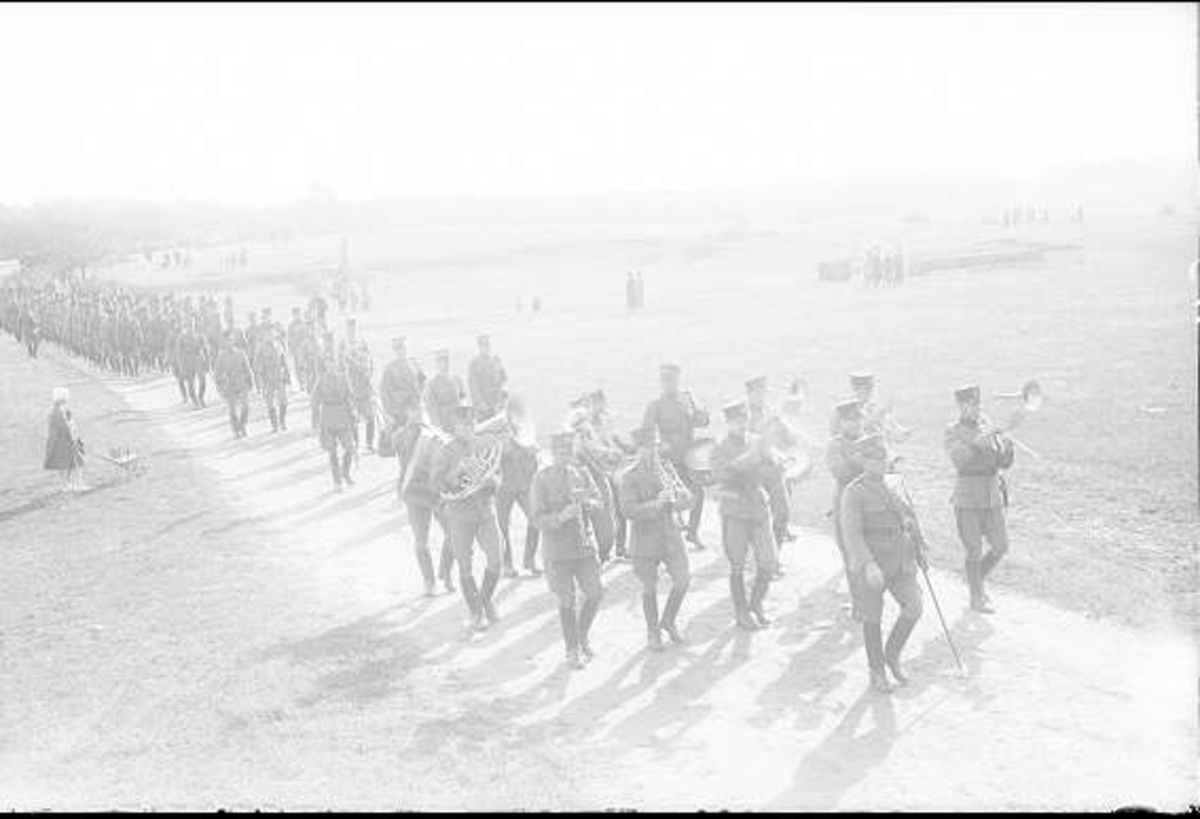 K 3 musikkår på marsch till korum vid förvaltarbostaden.